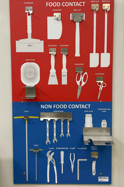 There are many benefits of using shadow boards in the workplace. These include; your working areas looking uniform and tidy, tools being put back correctly, and easy identification if a tool is missing. Finally using different colors across the board could stop cross-departmental use of tools.