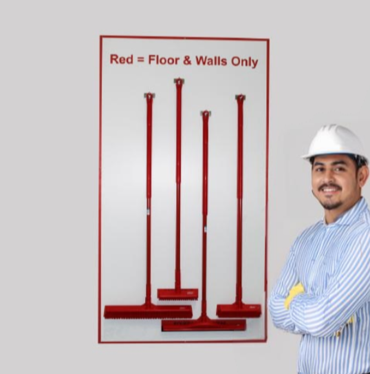 Available with or without cleaning tools. Basic tools required for shadow board cleaning stations like Squeegee, Push broom, Floor Safety Sign (Wet Stop Sign), Mop with Bucket, Counter Brush, Long Handled Dust Pan with broom, Small Dustpan, All Purpose Cleaner and many more.